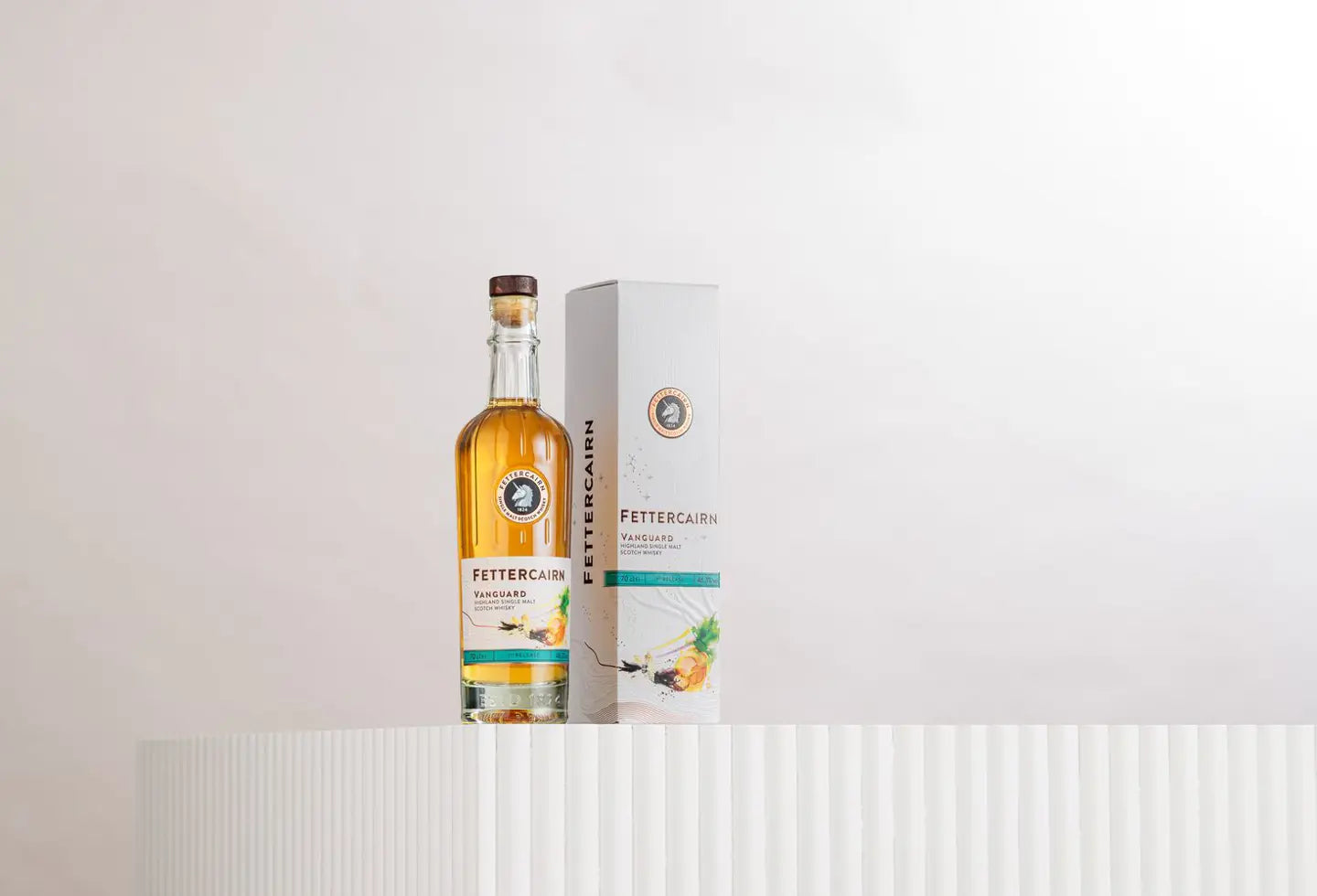 Vanguard is a unique, small batch whisky that started its life in ex-bourbon barrels, developing for 14 years before being finished in unique hybrid casks constructed from American oak staves and heavily toasted Scottish oak heads. These barrels were crafted from naturally wind-felled Highland Scottish oak and created in collaboration with Speyside Cooperage.